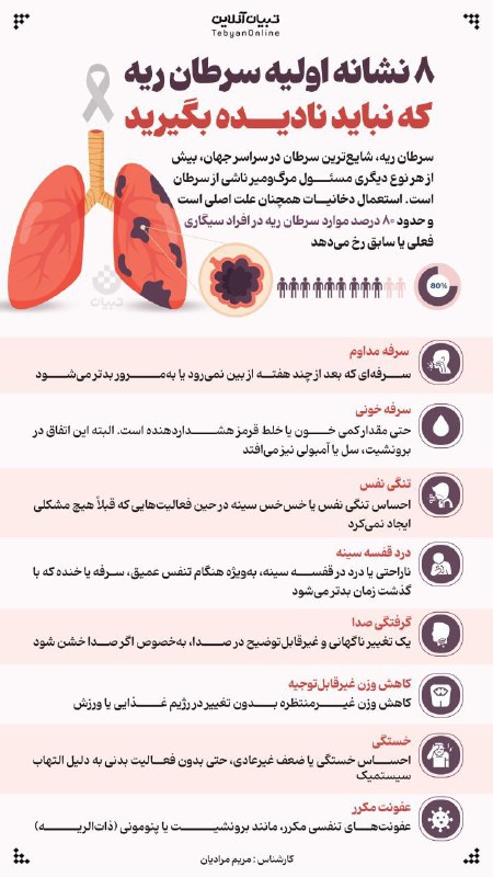 🔸۸ نشانه اولیه سرطان ریه که نباید نادیده بگیرید@AkhbarMashhad Posted on اکتبر 16, 2024 🔸۸ نشانه اولیه سرطان ریه که نباید نادیده بگیرید@AkhbarMashhad