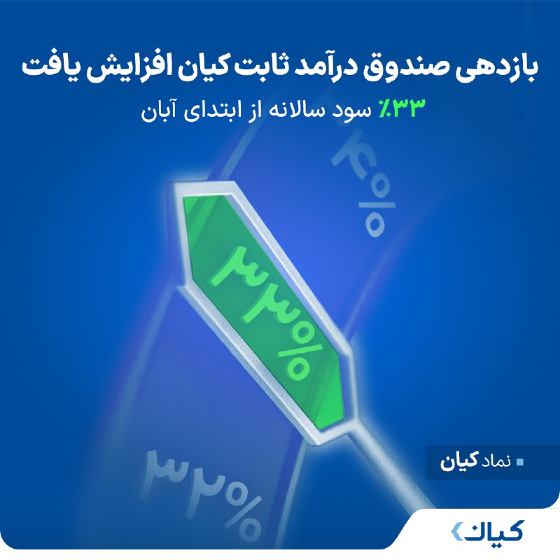 بازده صندوق درآمد ثابت کیان از ابتدای آبان ماه ۱۴۰۳، افزایش پیدا کرده و به ۳۳٪ سود سالانه رسیده.