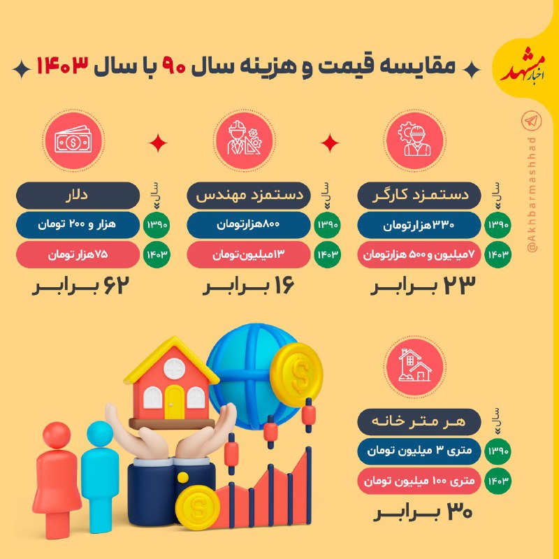 🔸از سال ۱۳۹۰ تا ۱۴۰۳ قیمت‌ها چقدر تغییر کرده است؟