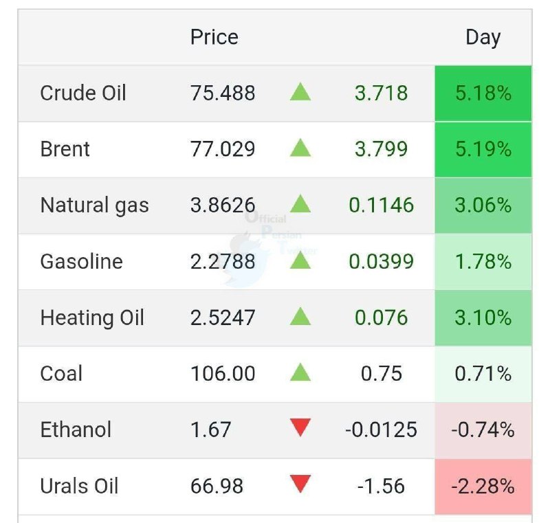 📷نفت با رشد ۵ درصدی از ۷۷ دلار عبور Posted on ژوئن 18, 2025 📷نفت با رشد ۵ درصدی از ۷۷ دلار عبور کرد!@AkhbarMashhad