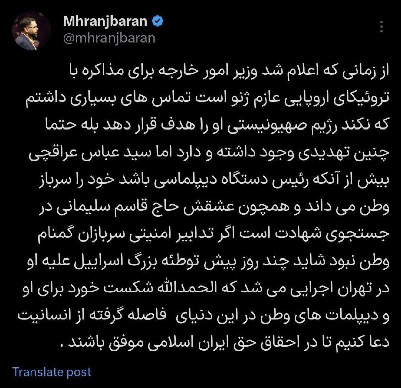 📷توطئه رژیم صهیونیستی علیه وزیر امور خارجه خنثی شد@AkhbarMashhad Posted on ژوئن 19, 2025 📷توطئه رژیم صهیونیستی علیه وزیر امور خارجه خنثی شد@AkhbarMashhad
