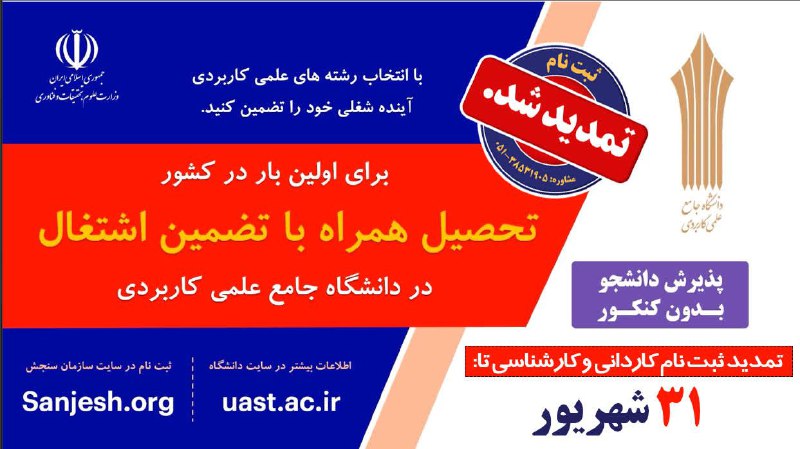 ✅ پذیرش دانشجو در دانشگاه جامع علمی کاربردی تمدید