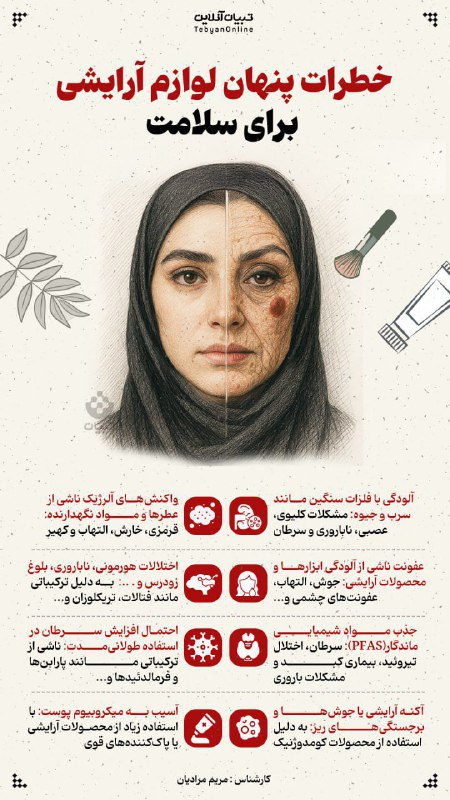 🔹 آرایش زیبایی می‌آورد؛ اما تحقیقات علمی نشان داده که برخی ترکیبات و روش‌های استفاده از آن می‌تواند سلامت پوست و بدن را تهدید کند. آگاهی و استفاده صحیح از این محصولات اهمیت بالایی دارد.