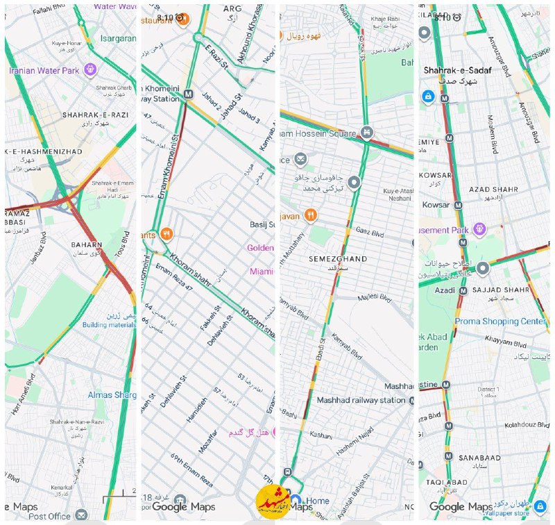🔸شدید ترین ترافیک در حال حاضر در محدوده میدان آزادی به ابتدای وکیل آباد ، انتهای ملک آباد و همچنین میدان استقلال و آیت الله عبادی در جریان است.