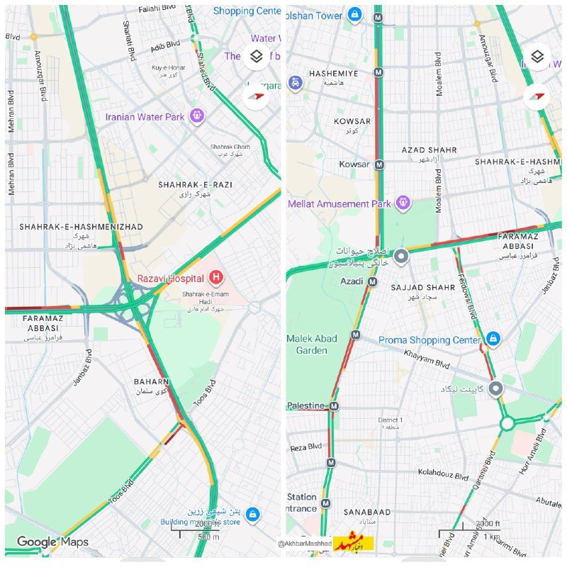 🔹گره ترافیکی بیشتر در بلوار وکیل آباد ، ملک آباد ، حد فاصل استقلال تا قائم و میدان استقلال است.