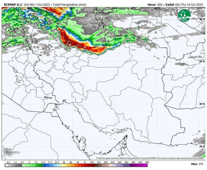 🔹امروز (پنجشنبه، ۱۰ مهر) ابرناکی و بارش پراکنده در شرق اردبیل، استانهای ساحلی خزر و در ارتفاعات خراسان شمالی ادامه خواهد داشت.
