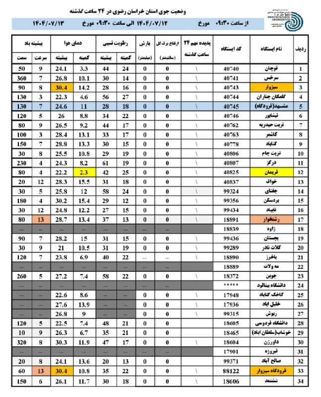 🔴گرمترین: سبزوار 30.4