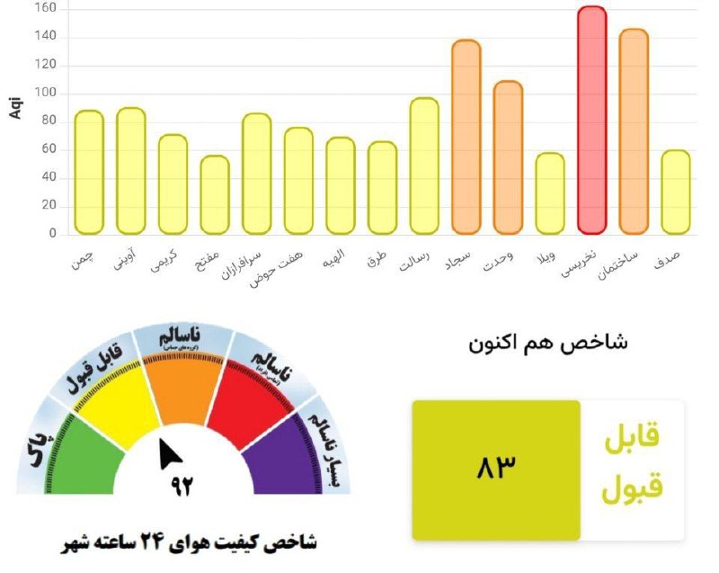 🔹هم‌اکنون شاخص کیفیت لحظه‌ای هوای مشهد با عدد ۸۳، وضعیت قابل قبول را نشان می دهد.