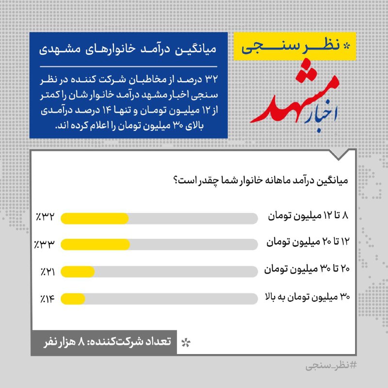 😀باتوجه به آمار اعلام شده درمورد پایین بودن میانگین درآمد خانوارهای خراسان رضوی ، از مخاطبان خواستیم تا میانگین درآمد ماهانه شان را اعلام کنند