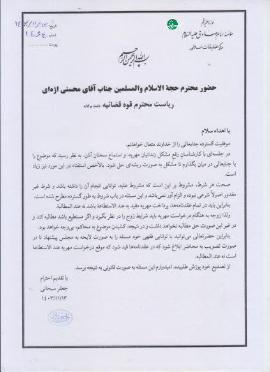 🔸نامه آیتالله العظمی سبحانی به رئیس قوه قضائیه: در تمام عقدنامهها، پرداخت مهریه باید عندالاستطاعه باشد نه عندالمطالبه!