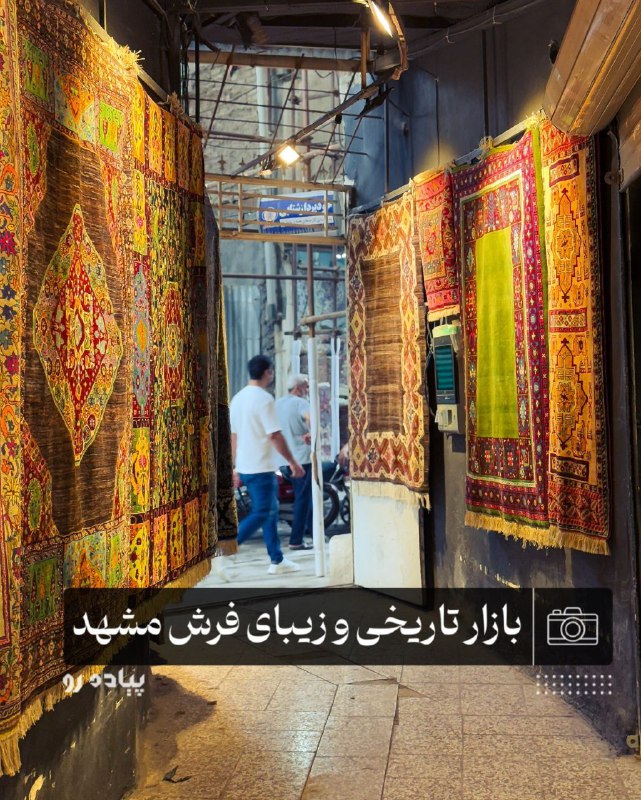 🔹بازار فرش مشهد، یادگاری از روزگار تیموریان و بخشی از بافت تاریخی شهر است که امروز در خیابان شهید اندرزگو (خسروی نو) نفس میکشد.