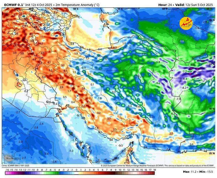 🔹هشدار سرمازدگی برای باغات در خراسان شمالی، رضوی و جنوبی صادر شد؛ تا بامداد سه‌شنبه (۱۵ مهر) سرما ادامه دارد.