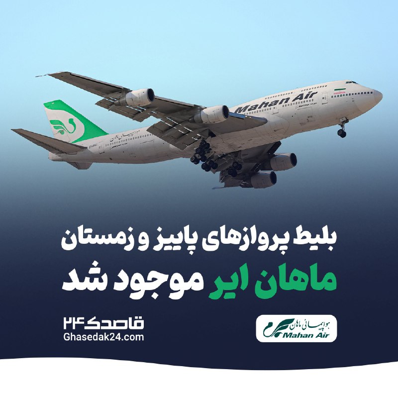 🔹برای برنامه ریزی سفرهای بازه زمانی ۴آبان تا ۲۲اسفند می تونید از همین حالا بلیط سیستمی مقاصد داخلی ماهان ایر رو با تخفیف از قاصدک۲۴ خریداری کنید!
