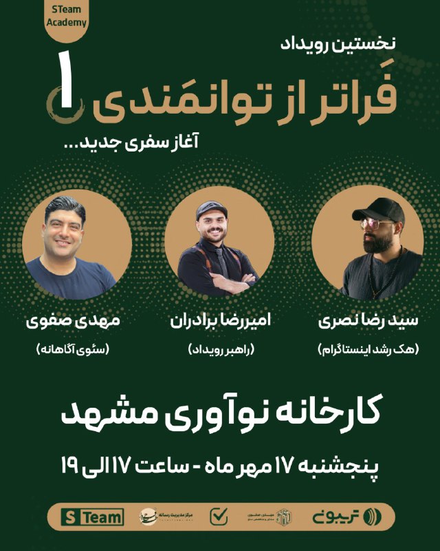 اگر برای فروش، برندینگ و دیده شدن در فضای آنلاین چالش دارید، رویداد «فراتر از توانمندی» دقیقاً برای شماست. ما با کارگاه‌های عملی و تعاملی، به شما کمک می‌کنیم تا مهارت‌های حیاتی برای رشد پایدار کسب‌وکارتان را کسب کنید.