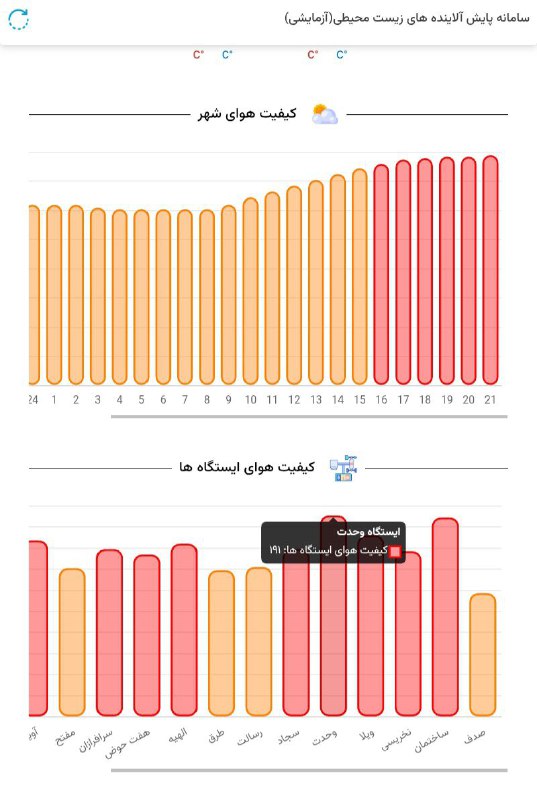 🛑برخی ایستگاههای سنجش هوا در مشهد عدد حدود ۱۹۰ رو نشان میدهند.