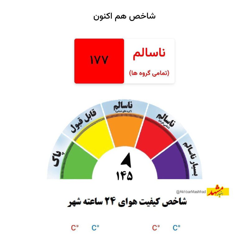 💢 شاخص آلودگی هوای مشهد هم اکنون ۱۷۷ /