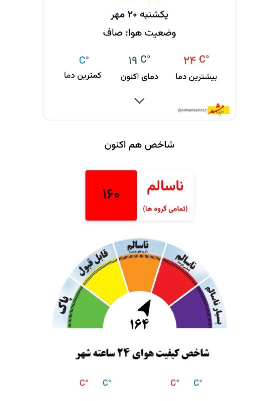 🚨 هوای مشهد صبح یکشنبه را با شاخص کیفی ۱۶۰ آغاز کرد/ نفس کشیدن سخته …