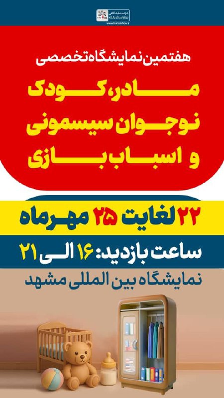 فراخوان دعوت به نمایشگاه تخصصی مادر٬ کودک و نوجوان سیسمونی و اسباب بازی مشهد.
