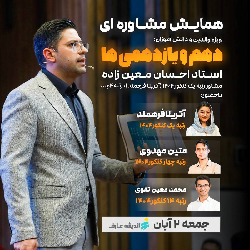 ✅ همایش مشاوره ای استاد معین زادهویژه دهمی ها