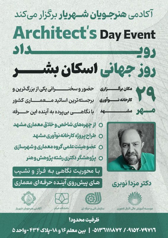 ⬅️قراره توی این ایونت از تجربیات دکتر مزدا نوبری بهره ببرید و خودتون رو در حوضه معماری به روزرسانی کنید
