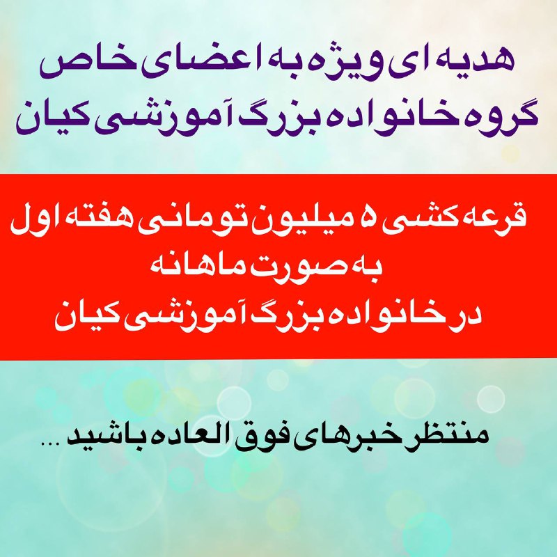 (جهت شرکت در قرعه کشی های ماهانه و دعوت از دوستانتان به گروه و کانال تلگرام کیان بپیوندید)