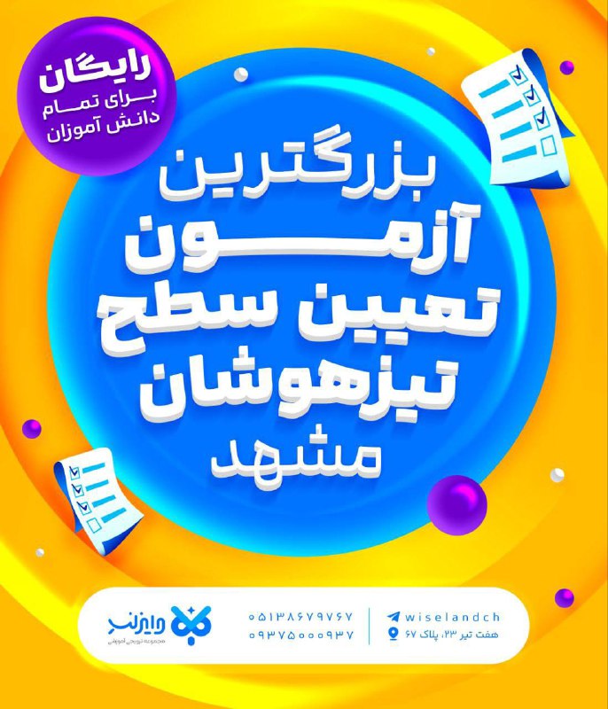 ❗️بزرگترین آزمون تعیین سطح تیزهوشان مشهد