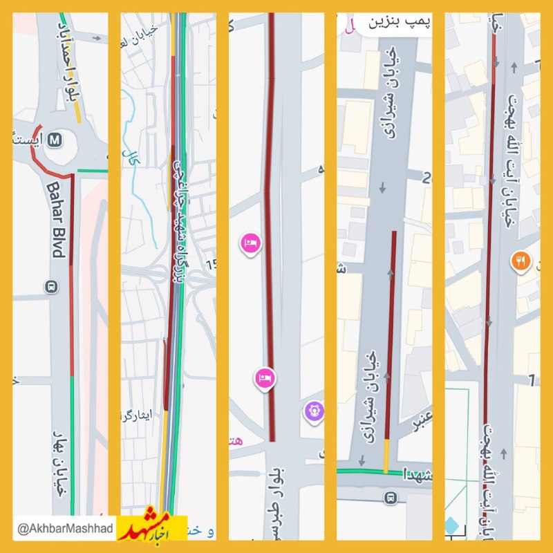 🔹ترافیک سنگین در خیابان بهجت، خیابان شیرازی، بلوار طبرسی ،بزرگراه چراغچی و خیابان بهار