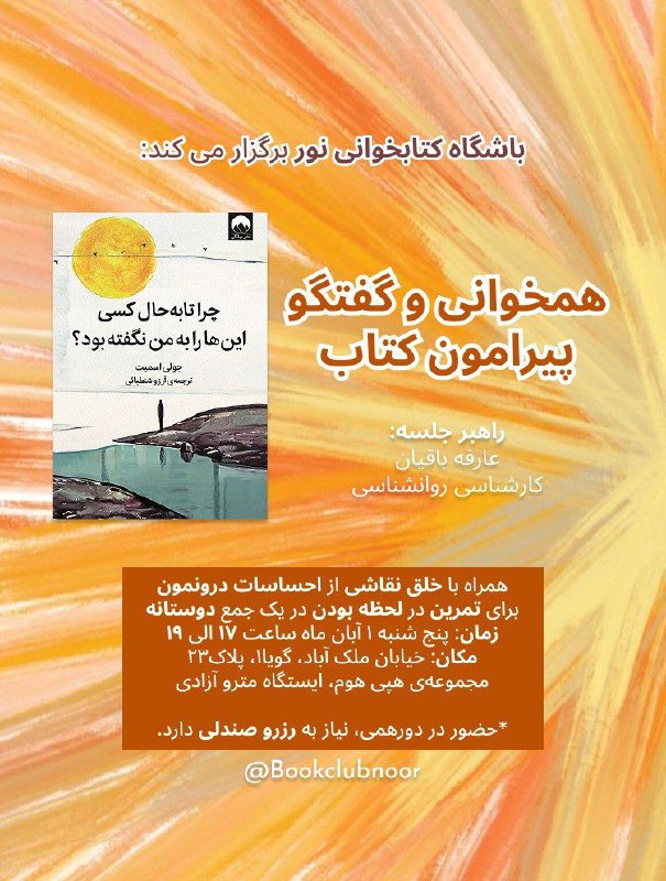 ✨باشگاه کتابخوانی نور مشتاقانه برگزار می کند: