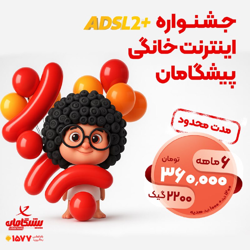 📣 فرصت استثنایی اینترنت خانگی پیشگامان 80%تخفیف2200 گیگ ADSL2