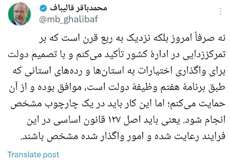 🔸محمد باقر قالیباف: از تصمیم دولت برای واگذاری اختیارات Posted on اکتبر 24, 2025 🔸محمد باقر قالیباف: از تصمیم دولت برای واگذاری اختیارات به استانها حمایت میکنم@AkhbarMashhad