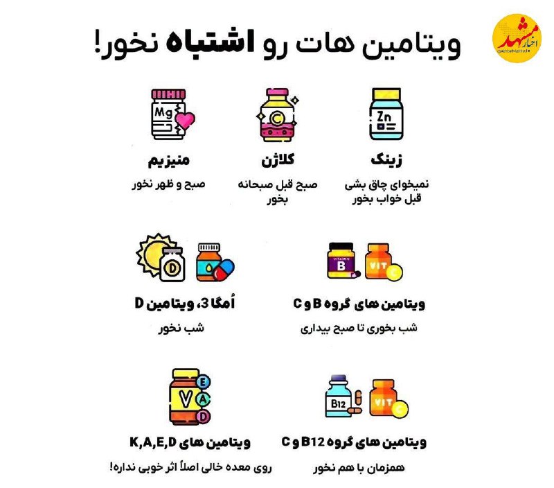 🔸زمان مناسب مصرف هر ویتامین رو میدونید؟@Akhbarmashhad Posted on اکتبر 25, 2025 🔸زمان مناسب مصرف هر ویتامین رو میدونید؟@Akhbarmashhad