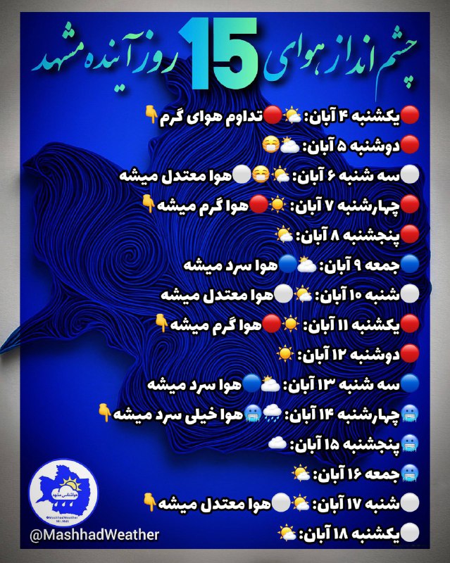 • 👁️ چشم انداز هوای ۱۵ روز آینده مشهد🍁هواشناسی خصوصی