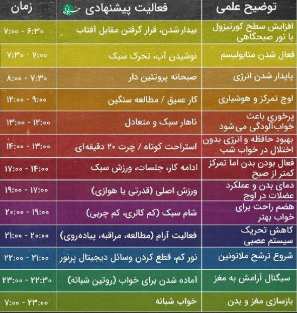 📷زمان مناسب انجام کارها براساس ریتم شبانه‌روزی بدن@Akhbarmashhad