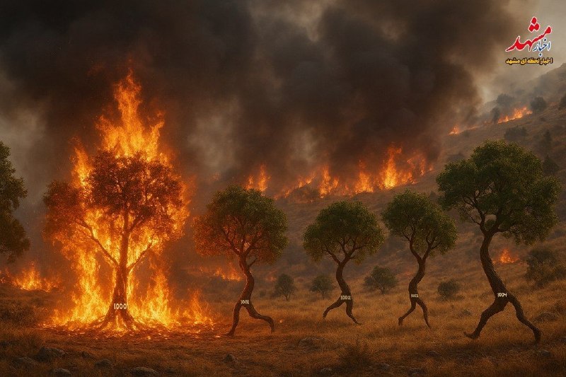 🔸این تصویر با استفاده از هوش مصنوعی و بر اساس آتشسوزی دیروز در مناطق حفاظتشده هزارمسجد تولید شده است، جایی که حدود هزار اصله نهال در آتش از بین رفتند.