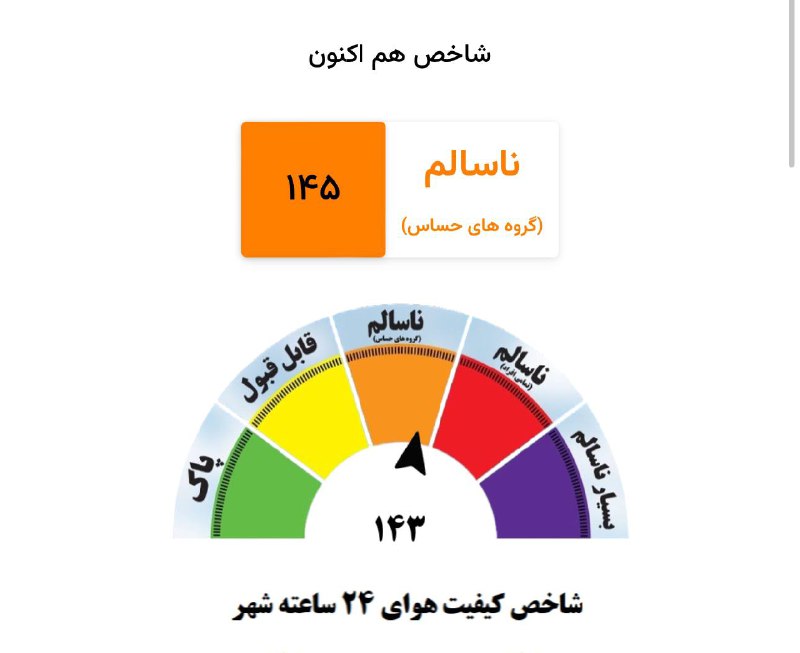 🔴 کیفیت هوای هم اکنون مشهد با شاخص ۱۴۵ Posted on اکتبر 28, 2025 🔴 کیفیت هوای هم اکنون مشهد با شاخص ۱۴۵ در شرایط ناسالم برای افراد حساس قرار دارد. 🍁هواشناسی خصوصی مشهد👇 @MashhadWeather