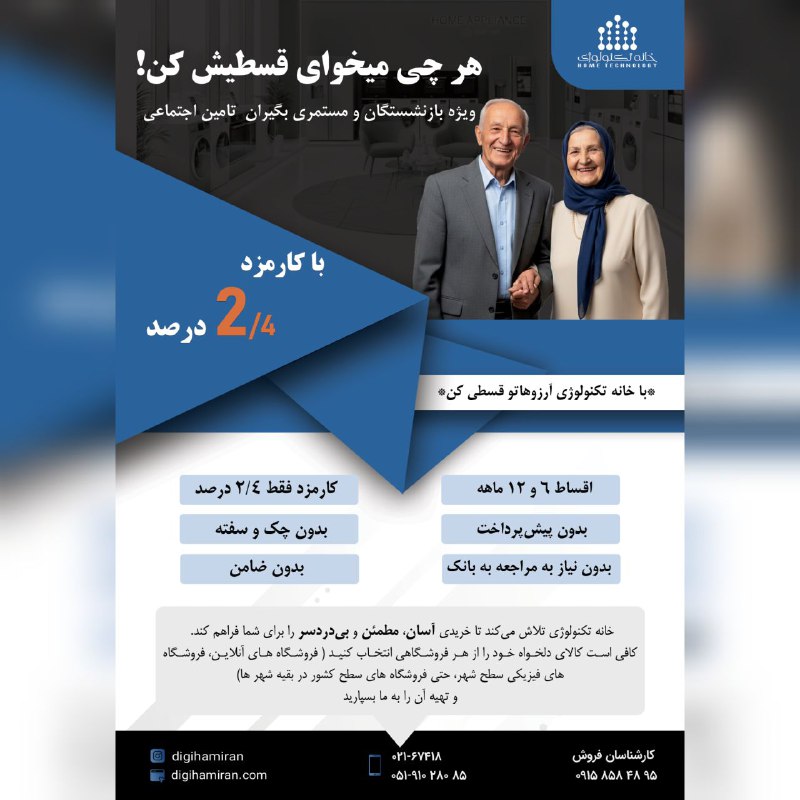 💢بدون پیش پرداخت با اقساط۶ یا ۱۲ماه با کارمزد ۲.۴% به ازای هر ماه