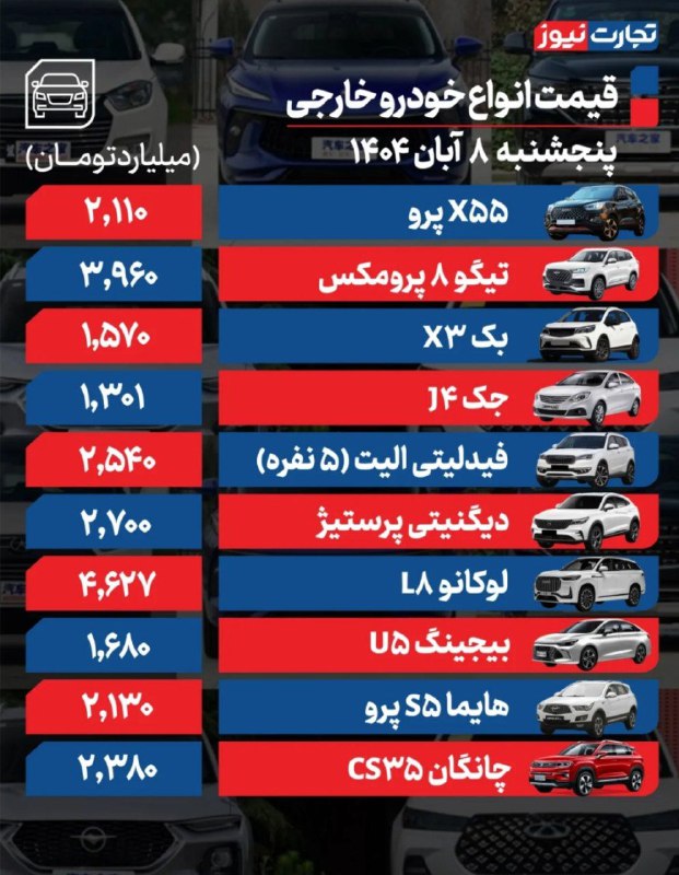 🔸قیمت خودرو امروز ۸ آبان/ امروز بازار شاهد نوساناتی