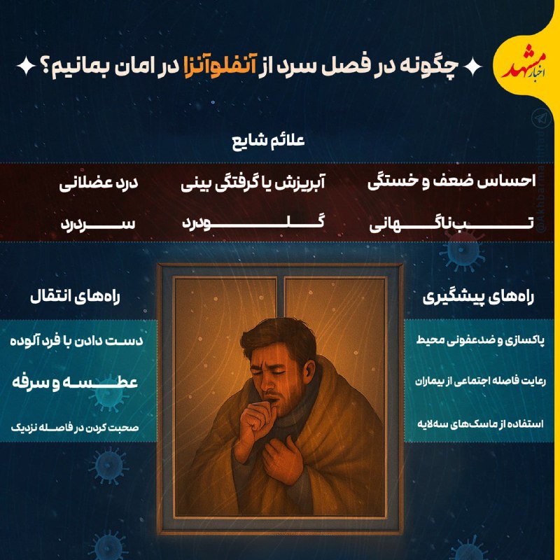 🔸چگونه در فصل سرد از آنفولانزا در امان بمانیم؟😷#اینفوگرافی_اخبارمشهد@AkhbarMashhad