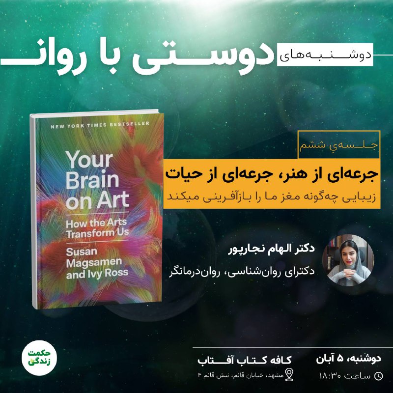 مشهد، بلوار احمدآباد، خیابان قائم، نبش قائم ۴، کافه کتاب آفتاب، طبقه بالا