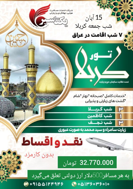 ✈️ تور کربلا هوایی