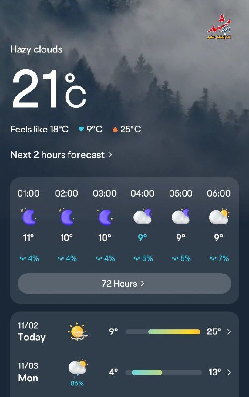 🔸هم اکنون دمای هوای مشهد مقدس ۲۱ درجه و آسمان شهر تا حدودی ابری است.