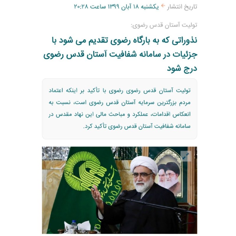 🔸سرنوشت مبهم سامانه شفافیت اقتصادی آستان قدس رضوی