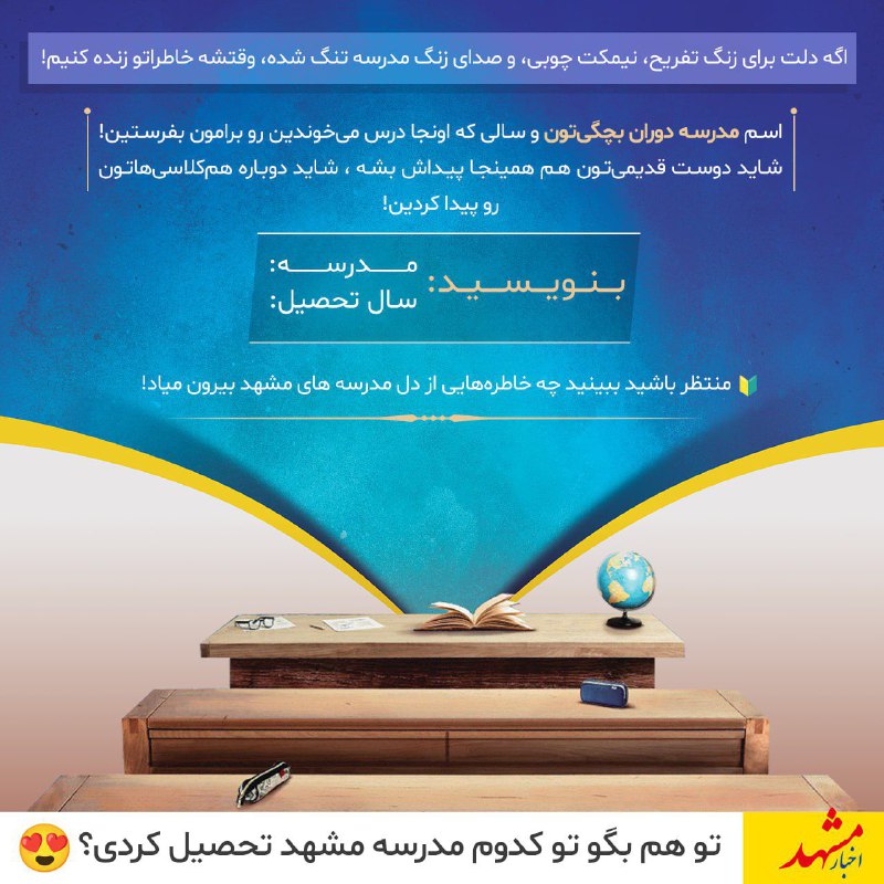 و منتظر باشید ببینید چه خاطرههایی از دل مدرسههای مشهد بیرون میاد!👇
