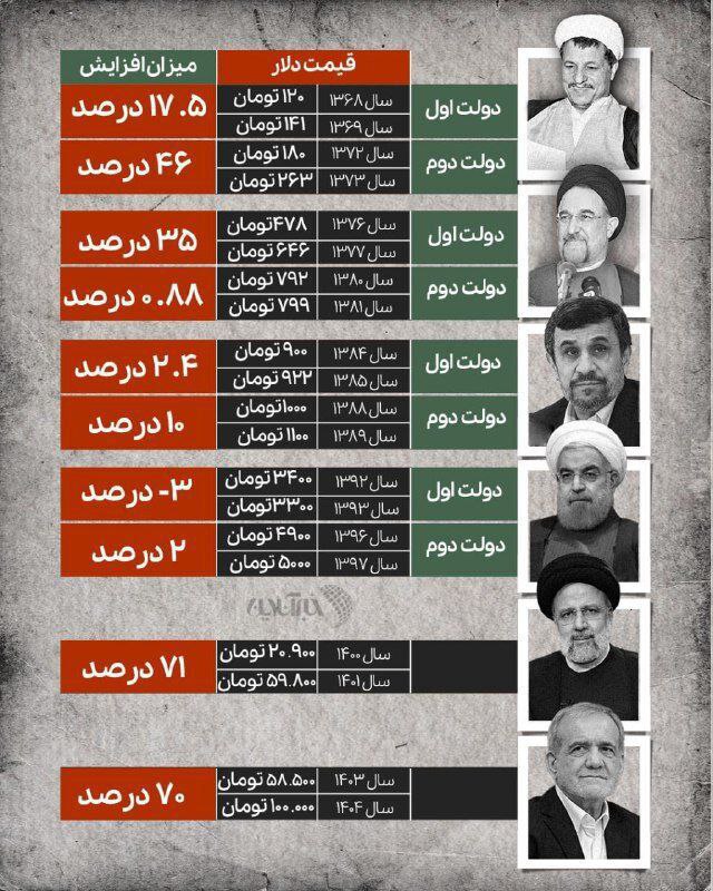 📷میزان افزایش قیمت دلار در دولتهای قبل@Akhbarmashhad Posted on نوامبر 4, 2025 📷میزان افزایش قیمت دلار در دولتهای قبل@Akhbarmashhad