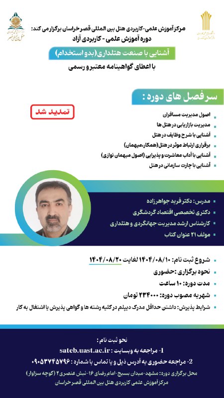 با آموزش های بنیادین، نخستین گام حرفه ای را در صنعت هتلداری و گردشگری با آگاهی و موثر بردارید .