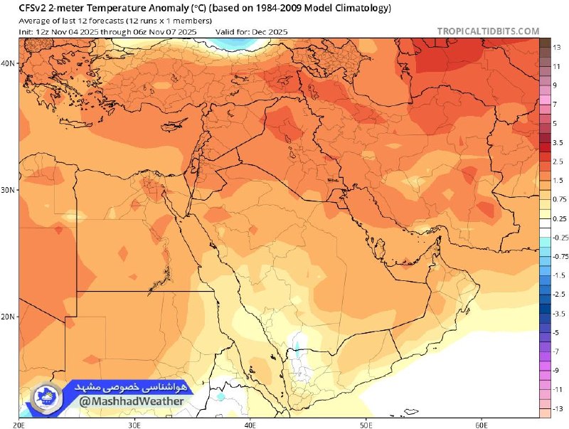 🔴 آخرین آپدیت آنومالی دما طی بازه زمانی ۱۰ آذر تا ۱۰ دی ماه ۱۴۰۴