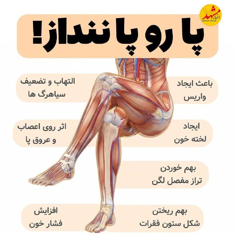 🔸پا رو پا ننداز، دشمن پنهان سلامتی!🦵@AkhbarMashhad Posted on نوامبر 13, 2025 🔸پا رو پا ننداز، دشمن پنهان سلامتی!🦵@AkhbarMashhad