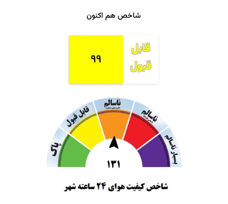 ⚪️کیفیت هوای هم اکنون مشهد با شاخص عددی 99 Posted on نوامبر 15, 2025 ⚪️کیفیت هوای هم اکنون مشهد با شاخص عددی 99 در وضعیت سالم قرار دارد. 🍁هواشناسی خصوصی مشهد👇 @MashhadWeather