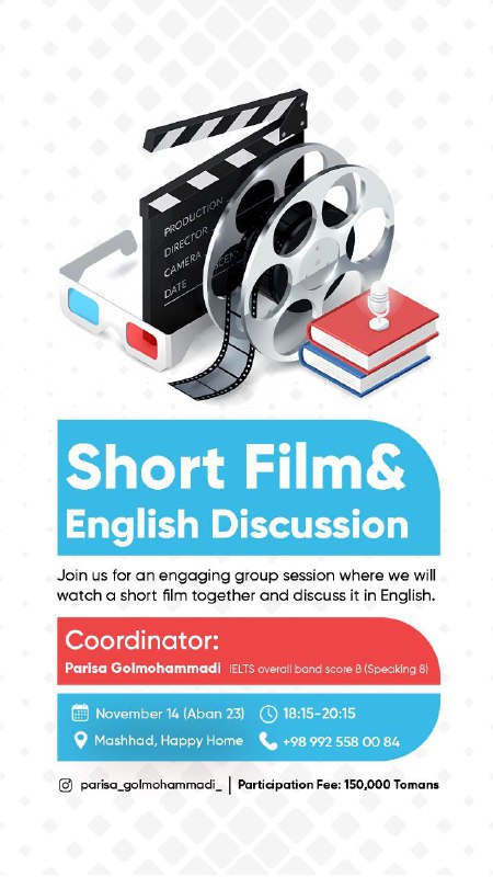 تماشای گروهی فیلم کوتاه و فرصتی برای گفت‌و‌گو به زبان انگلیسی
