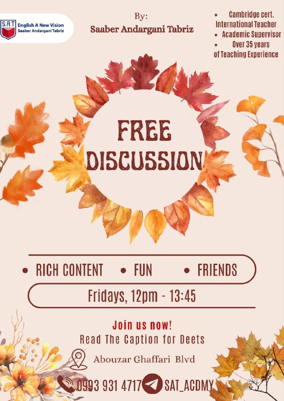 ⭐️ کلاس Free Discussion — جمعهها ساعت ۱۲ تا ۱۳:۴۵ ⭐️